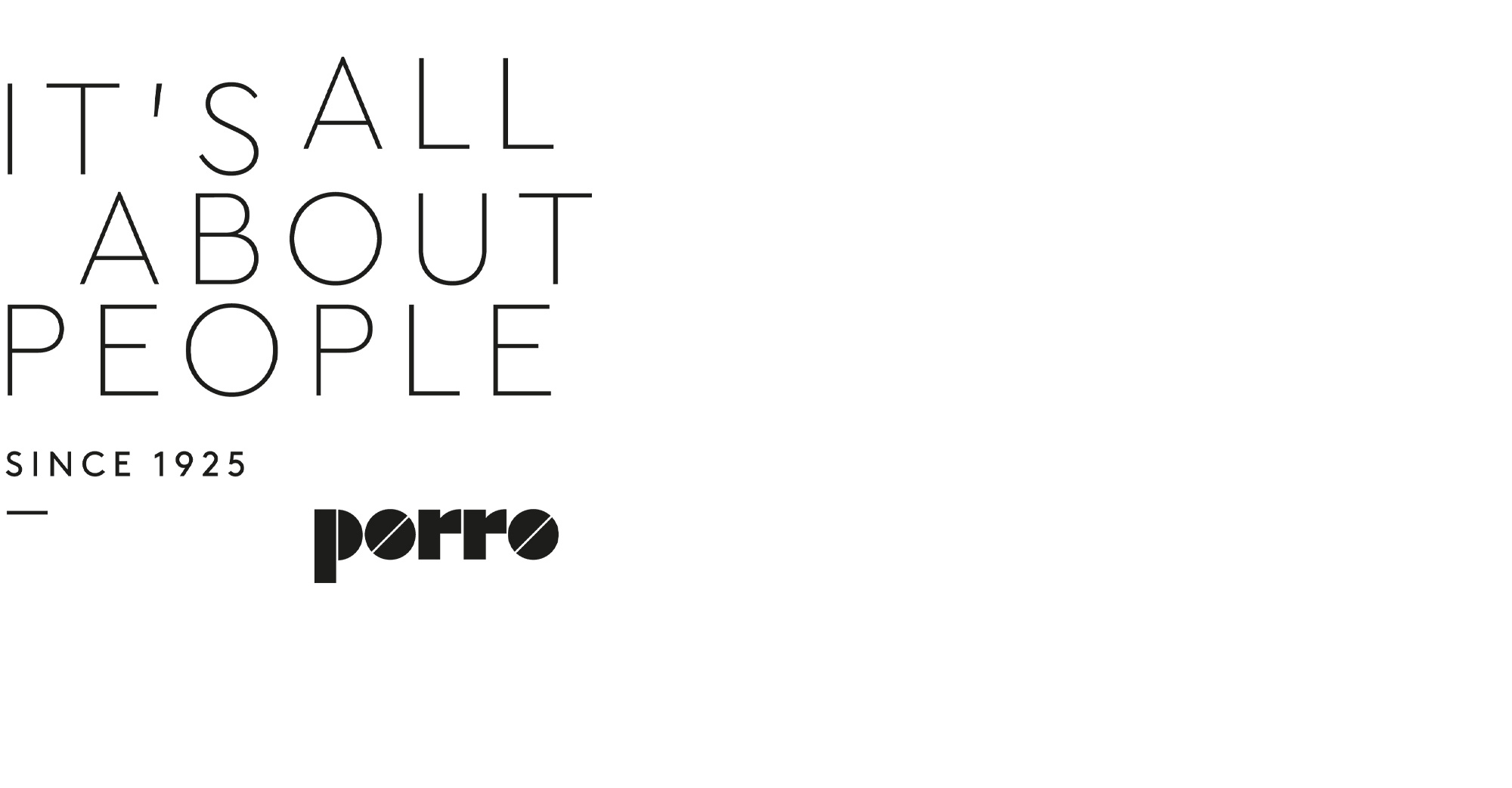 On the occasion of the company’s 100th anniversary in 2025, Lissoni Graphx developed a special logo and a new visual brand identity to celebrate the event. Starting from the phrase “It’s all about people”, the aim was to realize a fresh image with a modern typeface capable of communicating the close relationship between the people of Porro and its products.