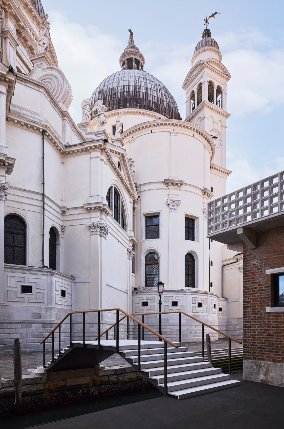 The private bridge providing access to the house was also specifically redesigned for the project and was conceived to be highly technological and appropriate to the modern era. The “humpback” structure is made of metal onto which steps of Istrian stone, the traditional Venetian masegni, were fixed along the curve of the arch. These were treated to make them slip-proof in inclement weather, while the handrail is made of wood.