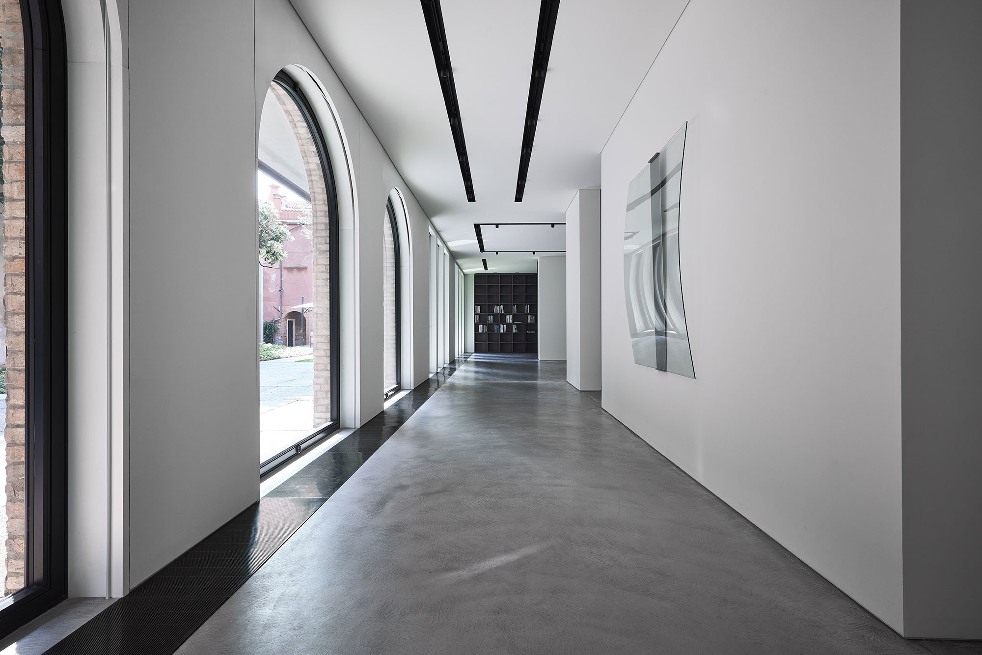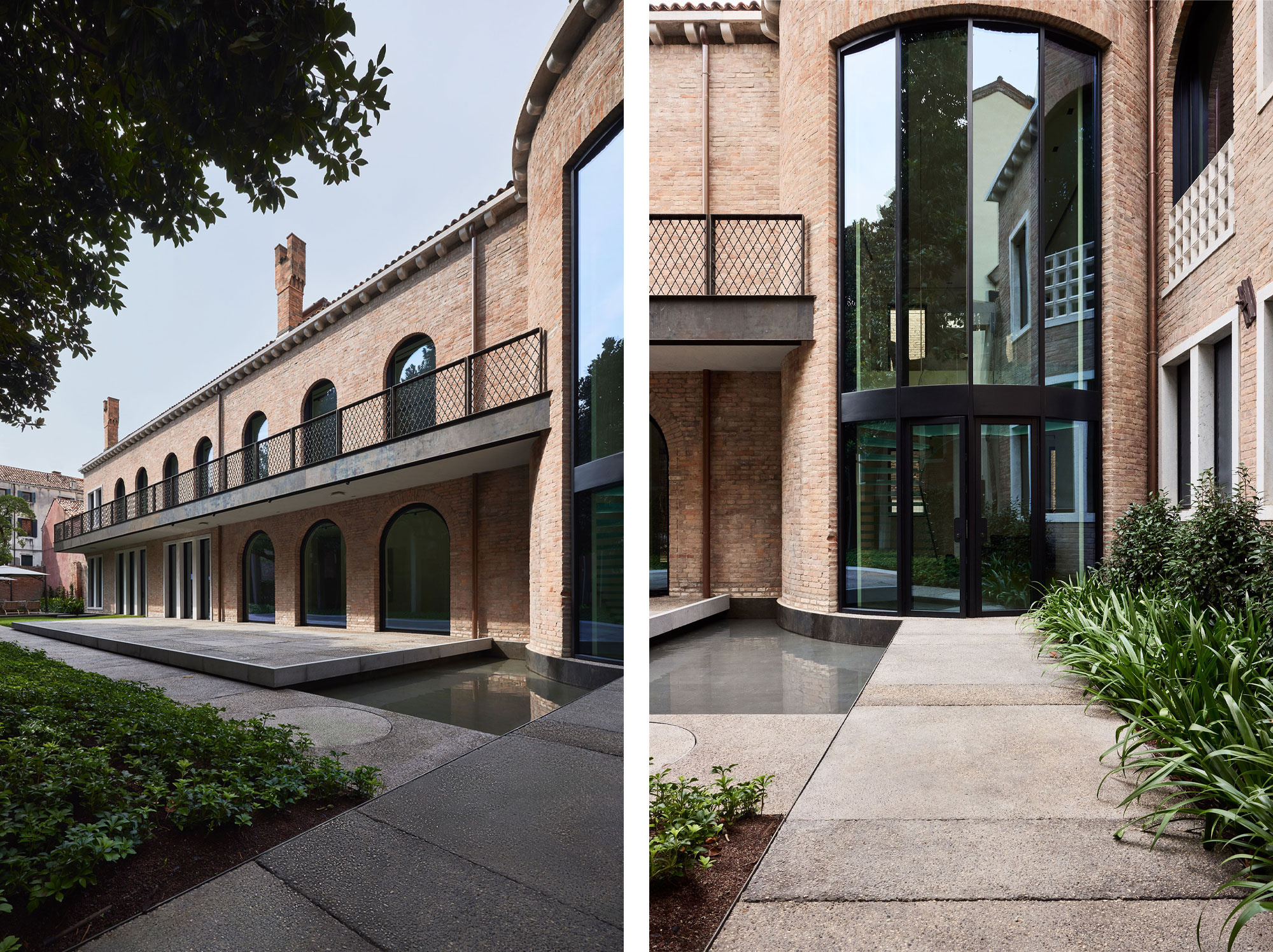 The exterior of the building was cleaned up, emphasizing the presence of the brickwork and redesigning the façade with large and austere windows in steel and glass - a contemporary intervention intended as a tribute to Carlo Scarpa’s work for the Fondazione Querini Stampalia.