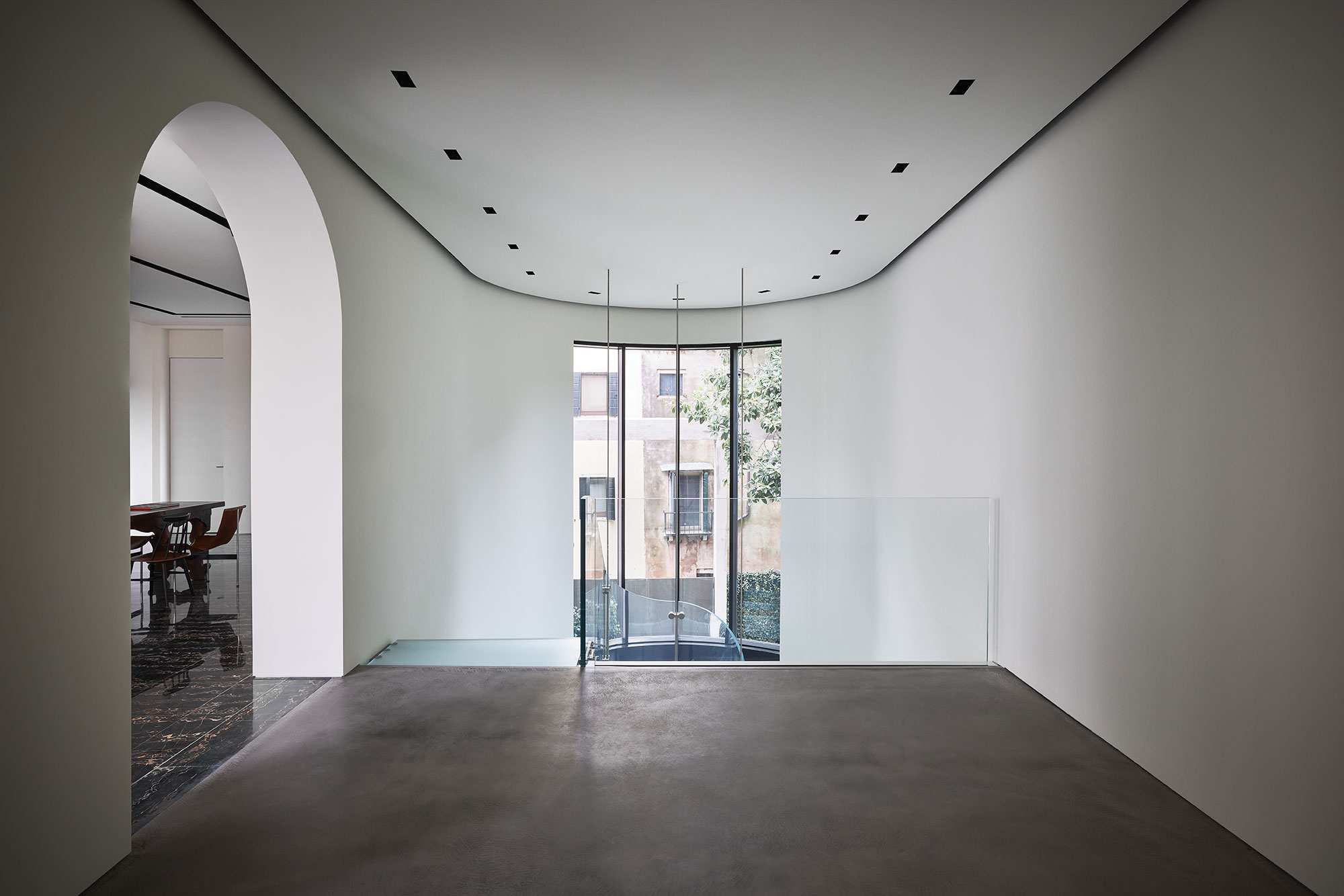 The building houses two connected worlds: an exhibition area for artworks and a private apartment which, when needed, can be transformed into a public venue working in tandem with the exhibition area.
