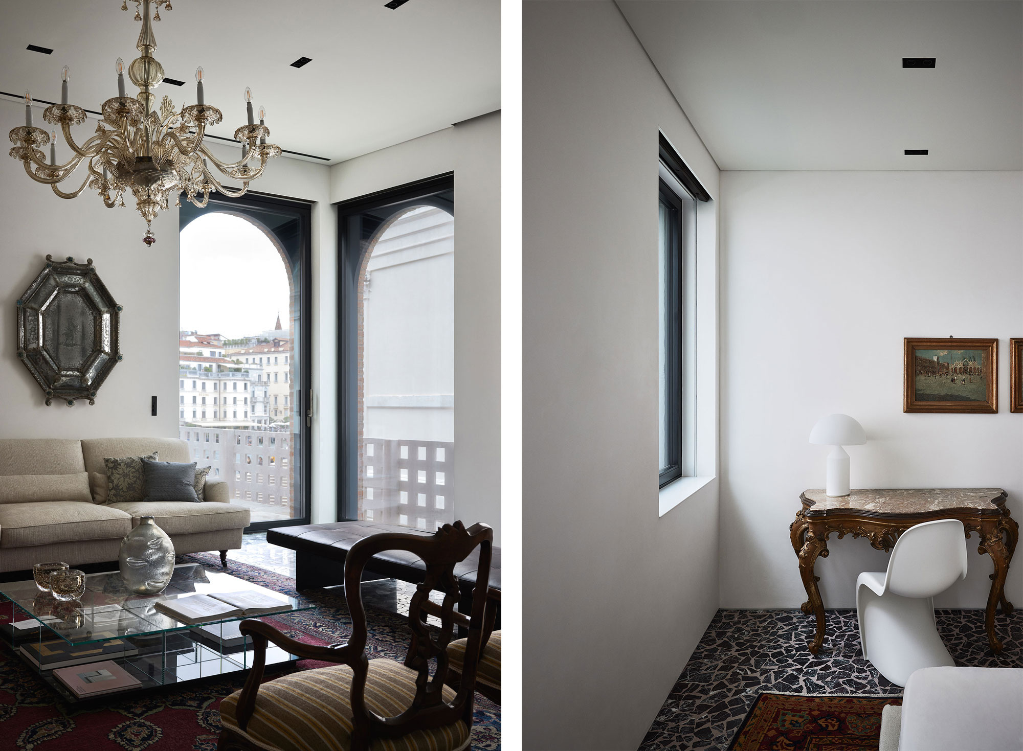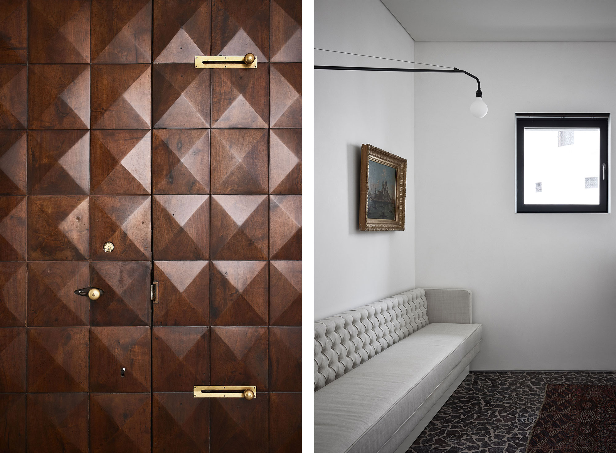 Casa Sanlorenzo arises in Venice inside a building dating from the late 1940s. Located next to the Basilica della Salute, an important presence from a design perspective, it benefits from a very large garden, a rarity in city. Its original character was purposely preserved, even though structural work proved necessary due to the edifice having fallen into disrepair.