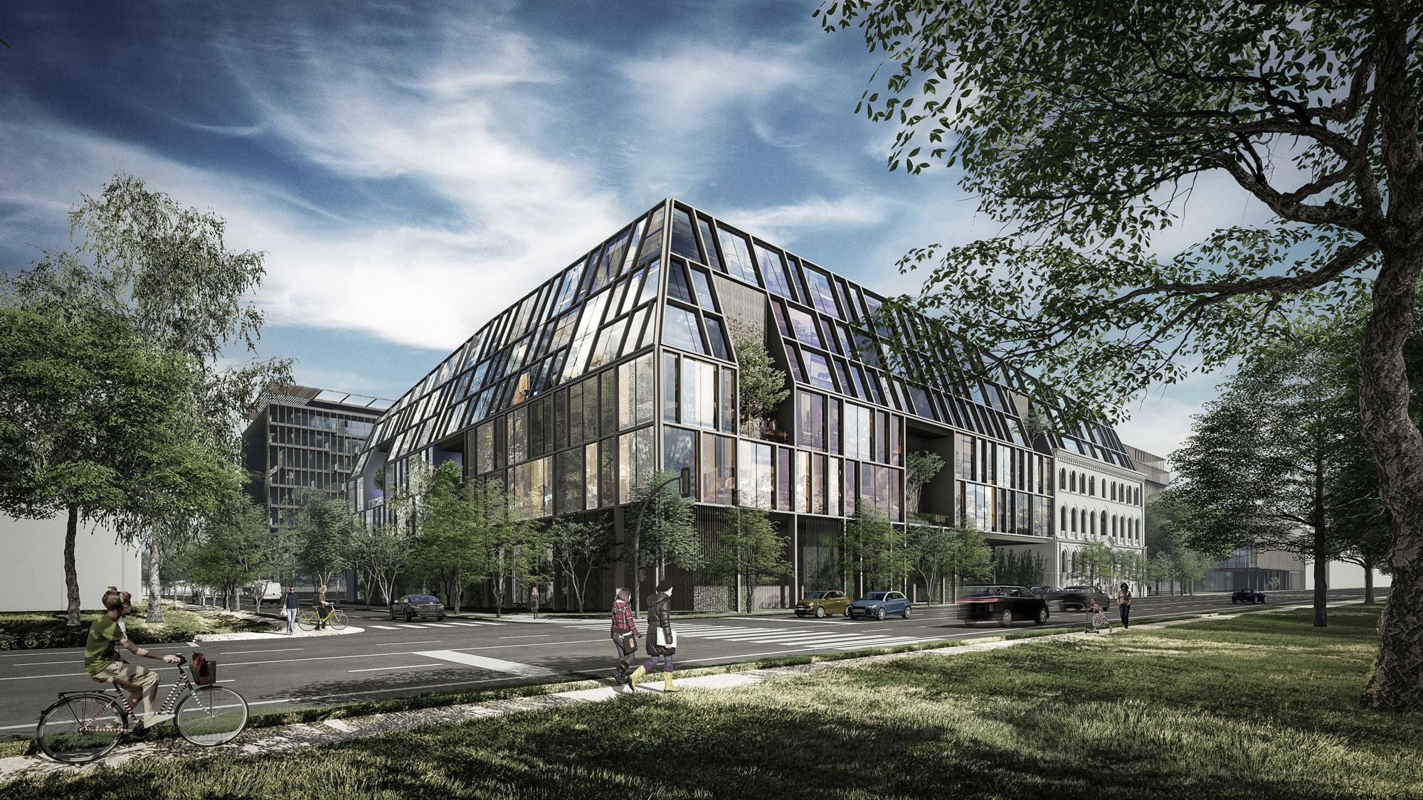 In addition, the studio has also designed two office buildings: Dürer1, a new construction of about 50,000 square meters, and Dürer2, a building of about 34,000 square meters that harmoniously blends in with a pre-existent historical structure.