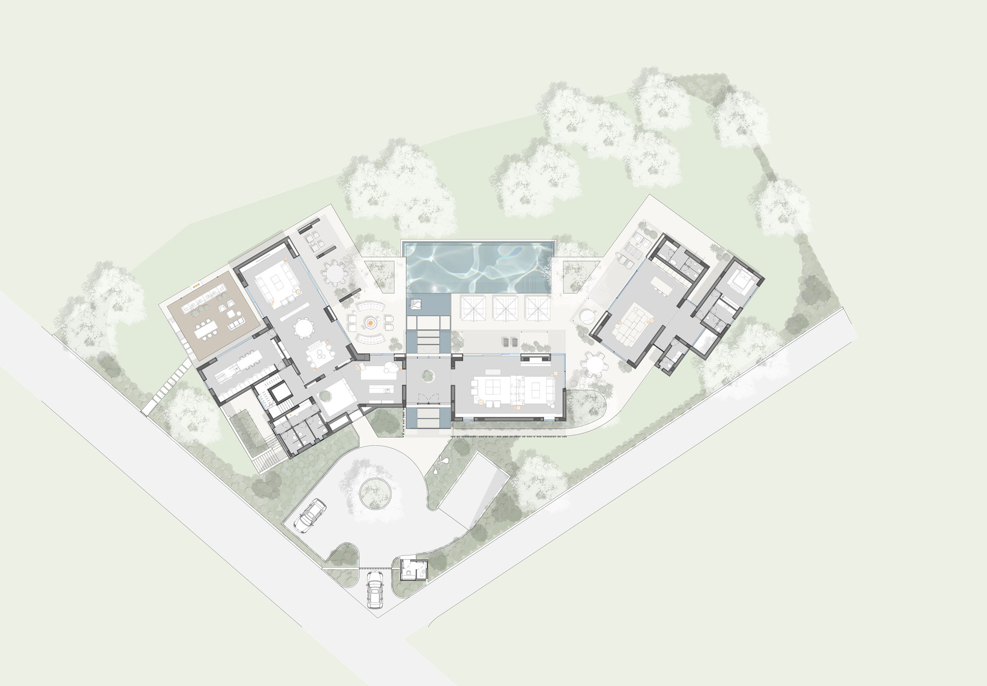 Situated in the heart of Kifisia, one of the most exclusive and verdant districts of Athens, the villa draws inspiration from the genus loci of the site – genuine and welcoming. Starting from a pre-existing structure, the project seeks to strike a balance between the pure forms of the architecture and integration with the local environment.